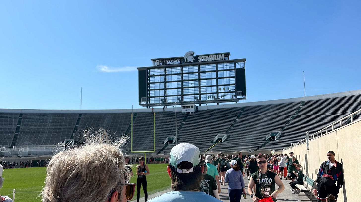 So I found myself in Michigan, signed up to do a local 5k with Mads and their mother. The starting line was clogged with people, runners and onlookers and college cheerleaders (?) lining the path. A generic electronic beat blared out of speakers, the kind that might soundtrack a motivational workout video with 20 million views on YouTube. A baby on the shoulders of the announcer babbled into a microphone.